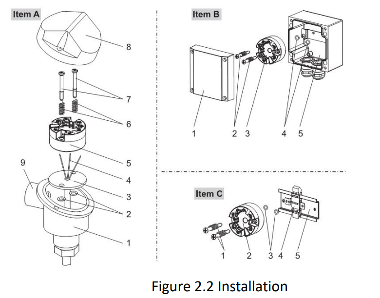 1. Open your temperature housing or DIN-rail adapter.